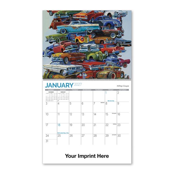 Car enthusiasts will enjoy Dale Klee’s artwork depicting pre-restored classics in this spiral bound calendar. Formerly sold only as limited edition prints, these images are now offered as a calendar exclusive.